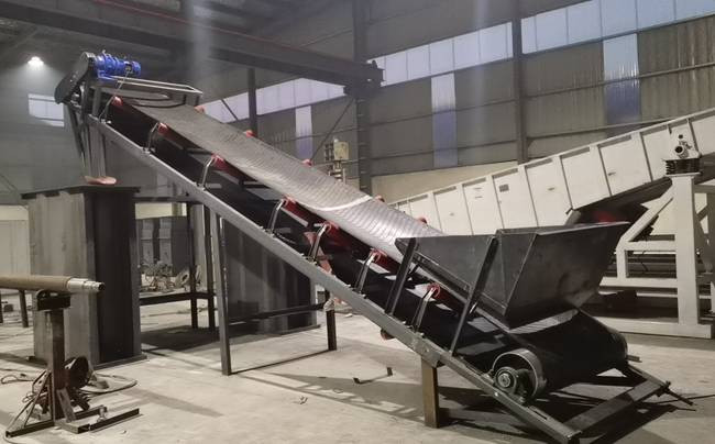 帶式輸送機又稱皮帶機,應用廣泛,輸送產(chǎn)量大。本臺設備是寬1.2米,長8米的帶式輸送機,輸送角度27度,采用人字形輸送帶,摩擦力強。用于輸送生活垃圾以及建筑垃圾。