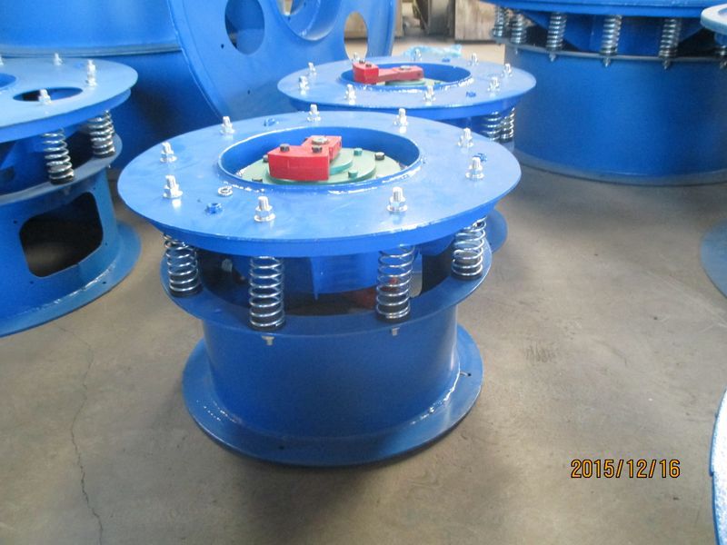 三次元振動篩旋振篩的動力源是振動電機,振動電機轉軸上下端安裝有偏心重錘,通過振動電機的旋轉運動在偏心重錘作用下轉變為水平、垂直、傾斜的三維運動即三次元運動,旋振篩利用振動電機三維運動,通過旋振篩的彈簧和振動體把三維運動傳遞給振動篩網面。通過改變振動電機上下重錘的相位角來實現物料在篩面上的運動軌跡,以此達到篩分、去雜、過濾的目的。